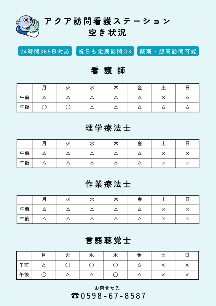 お問合せはアクア訪問看護ステーション(0598-67-8587)へ!